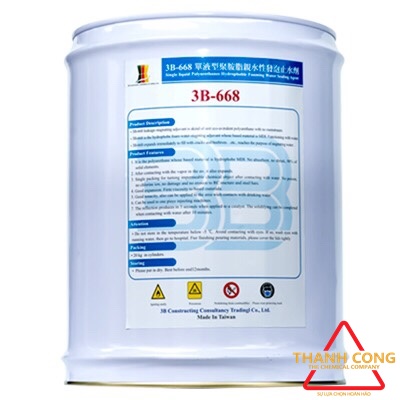 - 3B–668 là keo PU trương nở dẻo 1 thành phần ngăn cản nước gốc polyurethane có tính trương nở dùng để bơm xử lý vết nứt cho bê tông.